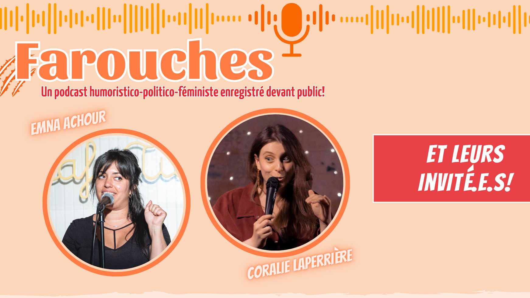 Avec sa collègue et amie Emna Achour, Coralie co-anime le podcast humoristico-politico-féministe Farouches enregistré devant public chaque premier mercredi du mois au bar l’Idéal à Montréal.